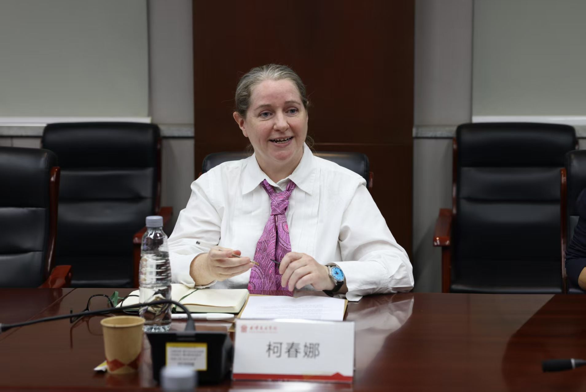 在会谈中,格拉斯哥美术学院亚洲首席代表王小爱从学科建设、师资队伍、科研创新等方面进行了分享。两校与会人员重点围绕联合培养项目、科研人才交流展开了深入讨论。座谈会由国际交流处处长沈岩主持。