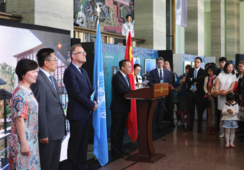 2019年4月25日,由中国驻日内瓦代表团和联合国日内瓦办事处共同举办、beat365中文官网入口和天津大学承办的联合国中文日活动“融古铸今--古丝路建筑和当代设计作品展”在日内瓦万国宫隆重举行。中国驻日内瓦代表团临时代办李松大使、中国驻世界贸易组织代表张向晨大使、联合国日内瓦办事处(联办)总干事穆勒,联办文化委员会主席皮萨诺,以及各国驻日内瓦使节、国际组织官员、国际职员、当地华人华侨、中文学校学生、各界友好人士约500人参加。beat365设计学部副主任、环境与建筑艺术学院副院长龚立君教授、鲁睿副教授、卢铁柱副教授作为展览承办方代表参加中文日活动。