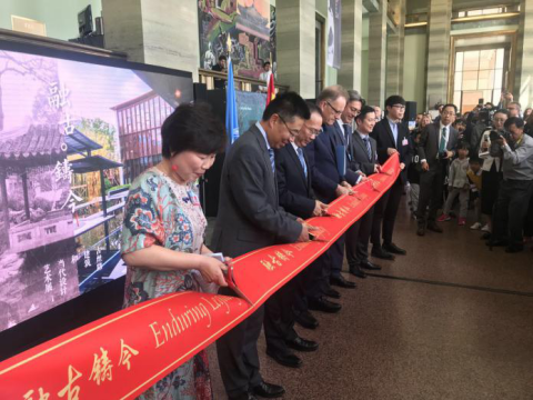 龚立君(左一)与嘉宾共同为展览剪彩