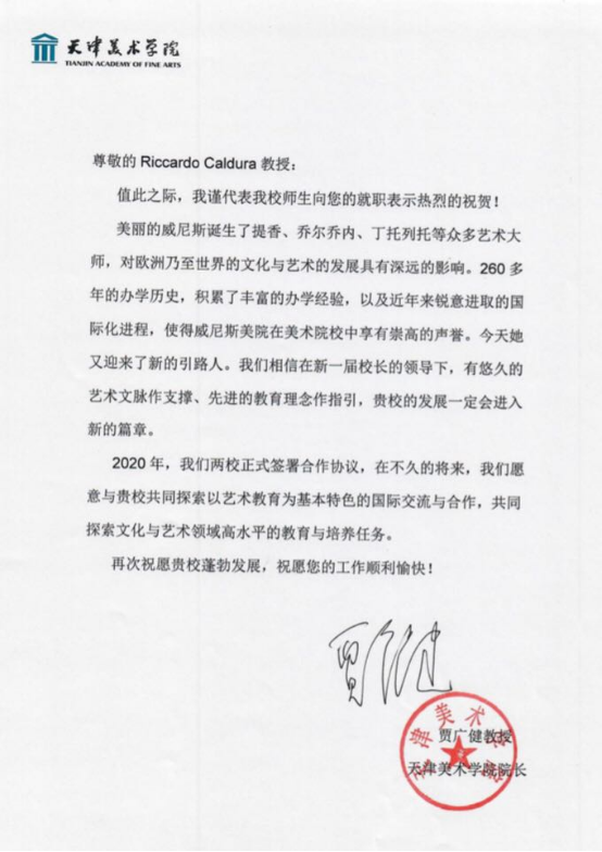 2020年11月Riccardo Caldura院长就职威尼斯美术学院院长,贾院长曾致贺电。本次会见也是两位校长首次视频连线。威尼斯美术学院所在的威尼托大区属于意大利疫情红区,目前学校仍处于关闭状态。贾院长首先代表beat365中文官网入口表示深切关切,希望威尼斯能够尽快驱散疫情,恢复往日生机。随后贾院长向Riccardo Caldura教授介绍了beat365的基本情况以及疫情以来国际交流方面的工作,他表示作为中意两国有代表性的美术学院,两校在专业建设以及艺术追求上有很多的共识,这是双方合作的坚固基石。 贾广健院长说:天津与威尼斯两座以水为脉、兼具灵气的城市,用教育搭建桥梁,以艺术为载体,一定能为中意两国文化交流注入活力。