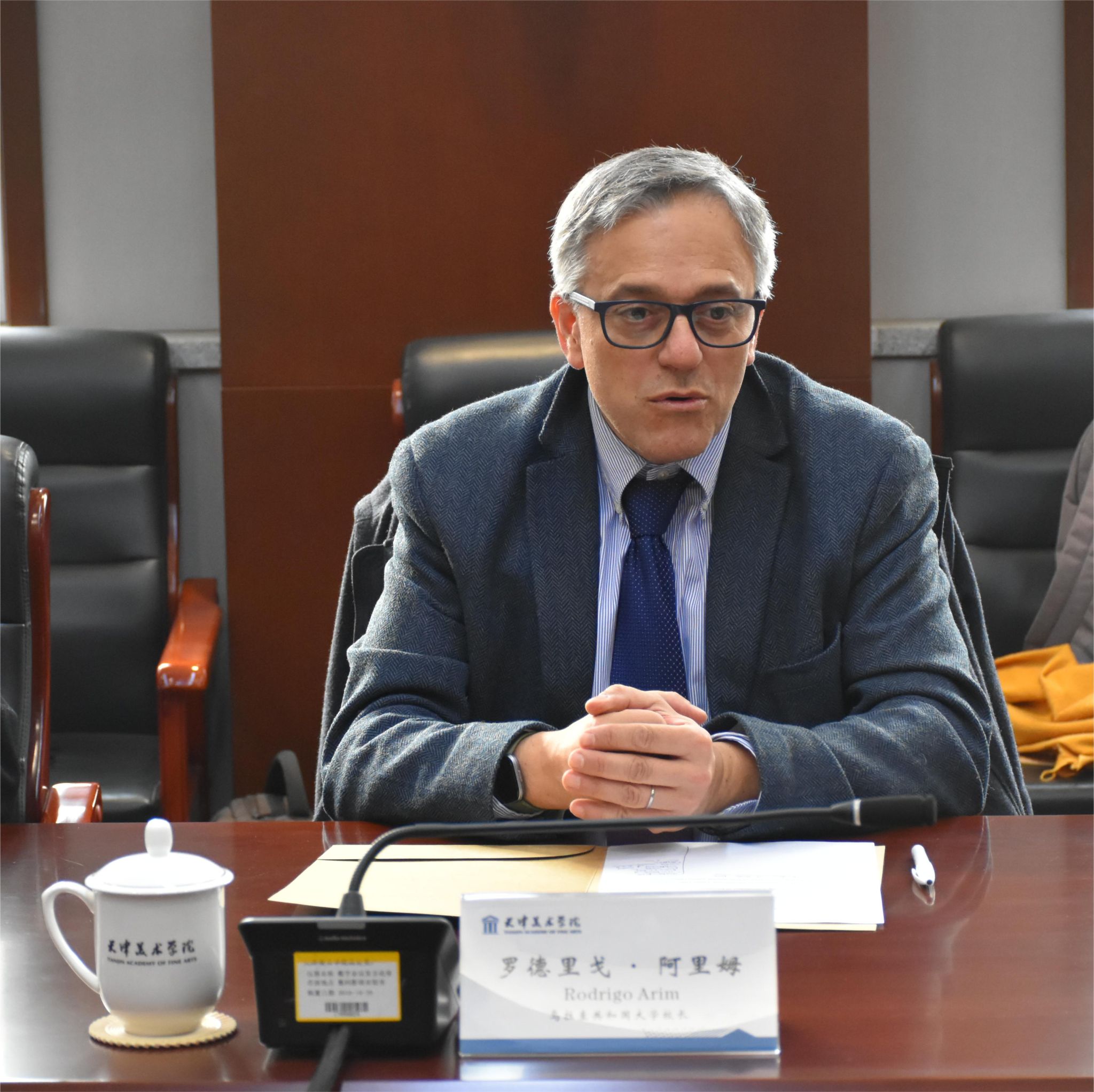 近日,乌拉圭驻华使馆以及乌拉圭共和国大学校长罗德里戈 · 阿里姆 (Rodrigo Arim)代表团一行9人到访beat365中文官网入口,天津市外办相关负责同志陪同访问。副院长寇疆晖会见来宾,国际艺术教育学院院长李通、中国画学院副院长赵栗晖以及国际交流处相关同志参加了会见。