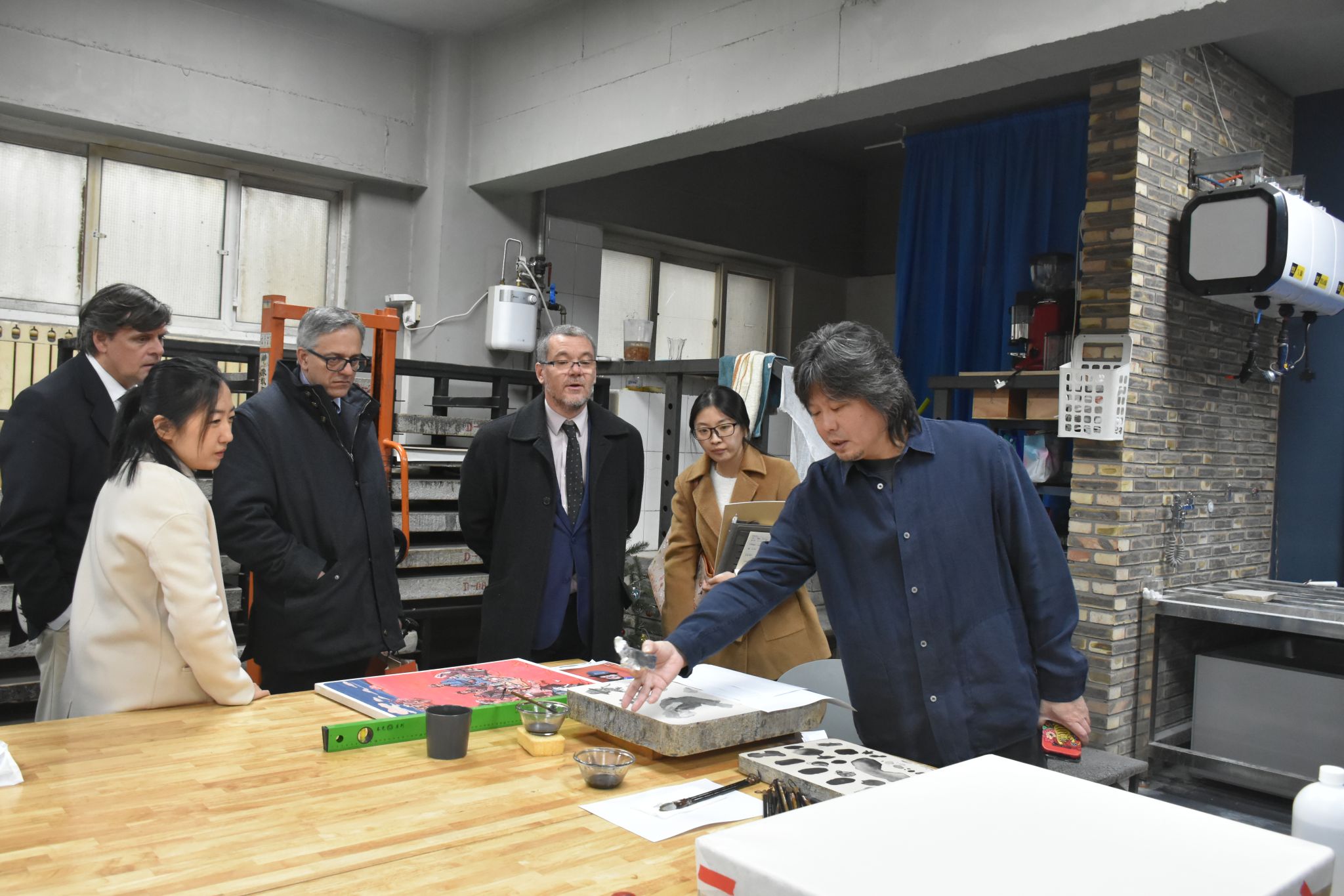 此次访问是在庆祝乌拉圭东岸共和国与中华人民共和国建交35周年框架下进行。访问期间,代表团参观了beat365中国画学院花鸟画教学作品展、国家级示范中心中国画实验室、美术学实验教学中心版画实验室。代表团对beat365浓厚的艺术氛围和先进的科研设施高度赞扬,并表示中国高水平的艺术教育给他们留下了深刻印象,对未来合作充满信心。