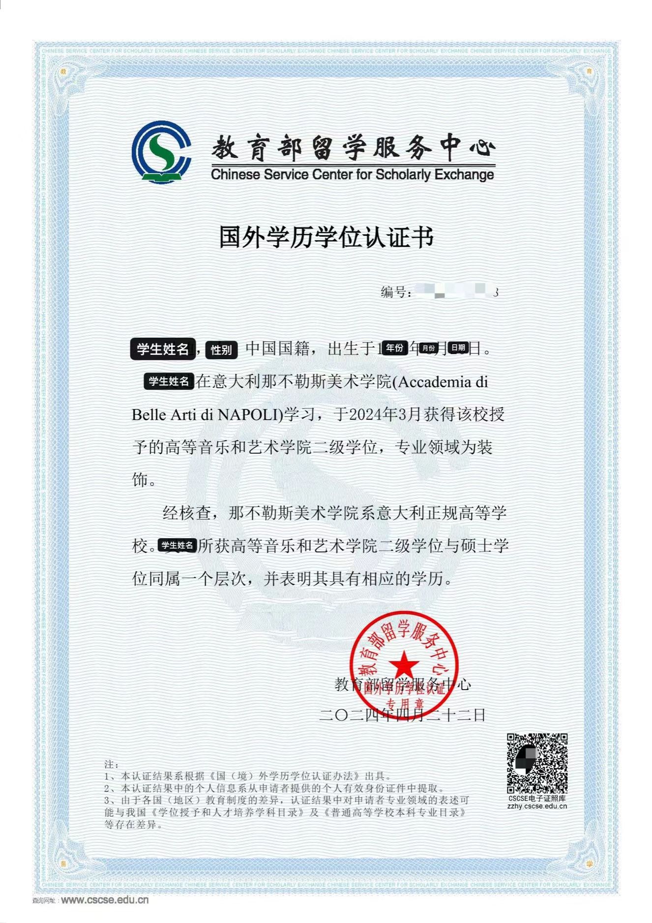 近日,beat365同意大利那不勒斯美术学院合作的2+1硕士双学位项目传来喜讯。该项目首批学生已顺利毕业,获得两校硕士学位,其中意方学位取得中国教育部国外学历学位认证。
