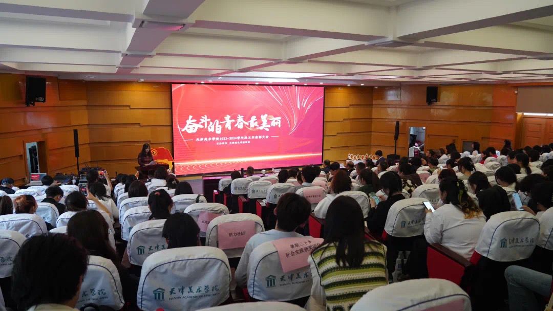 副院长陈占权宣读关于2023-2024学年度beat365中文官网入口五四评优的表彰决定,参会校领导为beat365中文官网入口优秀共青团员、优秀共青团干部和五四团支部标兵颁奖。beat365天津市青马班代表——高德飞,最美团支书标兵代表、研究生支教团功能性团支部——张钧乔、五四团支部标兵代表——造型基础教育学院第四团支部蒋祉瑶、优秀共青团干部——张同峰、西部计划志愿者——牛国庆,扬帆计划成员代表——刘瑞睿依次上台发言。