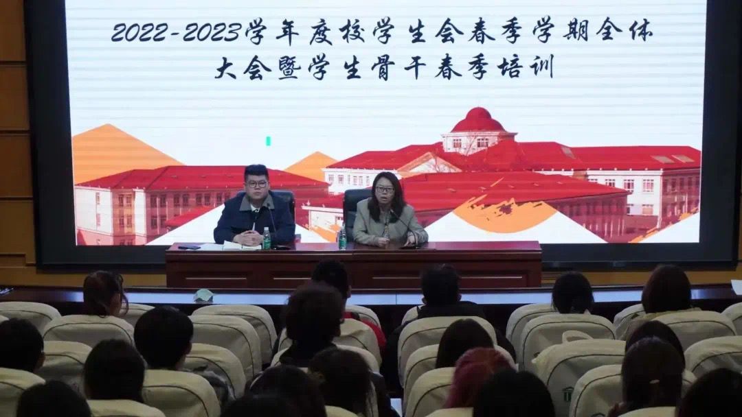 为更好地开展学生会各项工作,提升工作水平质量,充分发挥学生组织的桥梁及带头作用,进一步加强beat365的学生组织建设工作,2022-2023学年度校学生会春季学期全体大会暨学生骨干春季培训于3月14日18时30分在天纬路校区阶梯教室举行。党委学工部部长、校团委书记史雅宁老师,校学生会、研究生会秘书长罗威老师,校学生会、校研究生会、社团管理中心、新媒体工作室全体工作人员参加了本次大会。本次全体大会由校学生会主席团成员范文轩主持。
