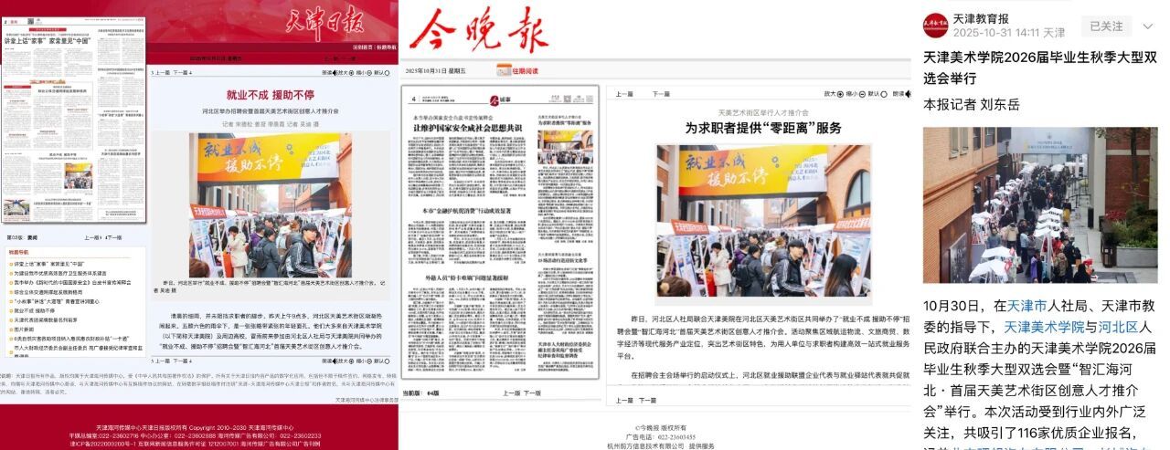 此次活动也得到了天津日报、天津广播电视台、今晚报、津云、天津教育报等各大媒体的广泛关注与报道。下一步,beat365将以此次本次推介会为契机,持续构建“天美创意人才”品牌输出长效机制,深化与河北区及参会企业的合作,将“天美艺术街区”打造为产教融合的实体平台,实现创意人才的精准输送与前置培养,将活动成效转化为服务区域文化产业与新质生产力发展的持久动力,为天津城市高质量发展持续贡献天美力量。