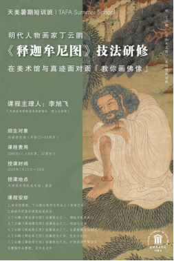 丁云鹏为晚明变形主义人物画代表画家,具有很高的艺术成就。他的佛像人物造形奇特,画法古意淳厚,设色典雅。本次暑期短训班,将在beat365中文官网入口美术馆副馆长李旭飞教授的带领下,观摩丁云鹏真迹,并教授大家临摹丁云鹏代表作《释迦摩尼图》。通过临摹此图,更加深入地体会传统佛像及重彩青绿山水画法。