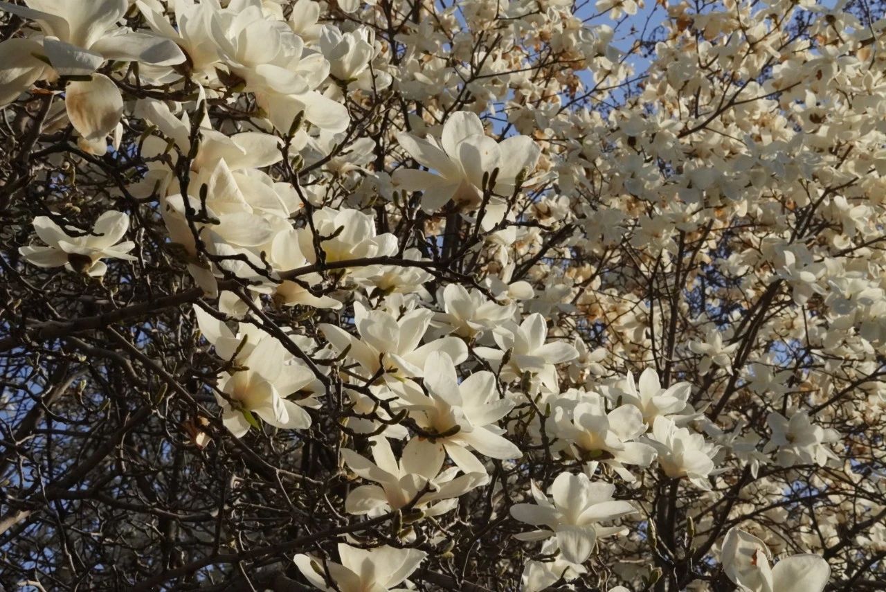 湛蓝的天空下,玉兰花美哉哉