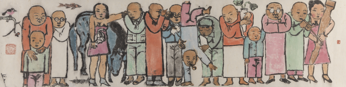 大家庭 190×48cm 水印木刻 2015年