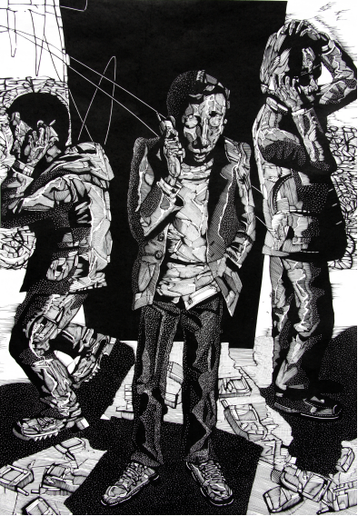 待后生 75×110cm 黑白木刻版画 2013年