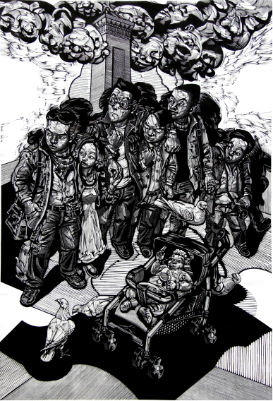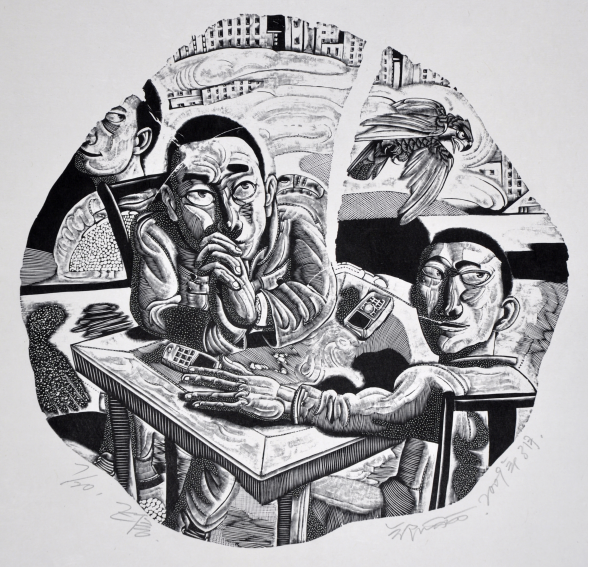 信息爆炸 70×100cm 黑白木刻版画 2008年